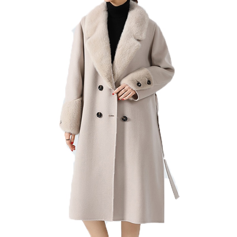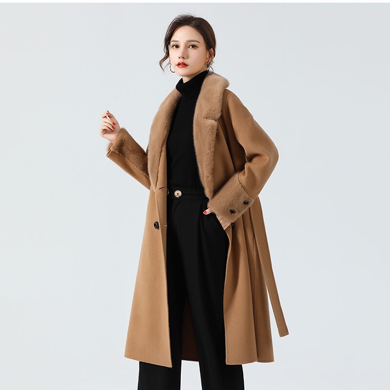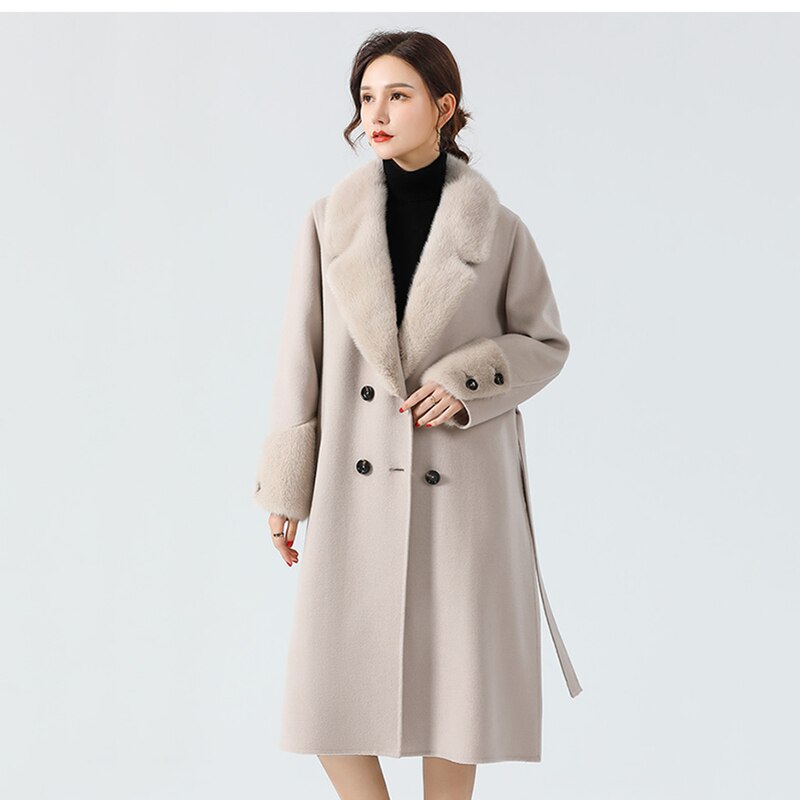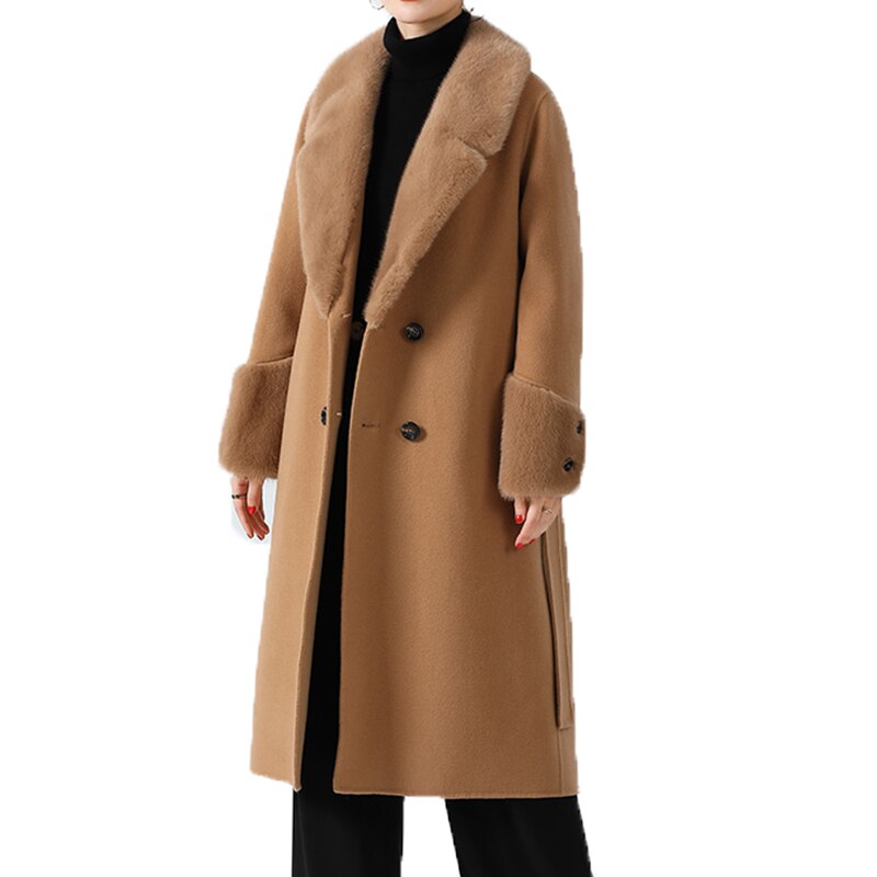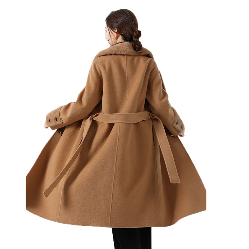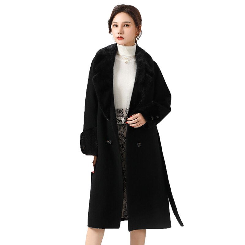 New Female Jackets Sheep Wool Cashmere Coats Winter Clothes Woman Coats With Natural Mink Fur Collar Cloth Free Shipping