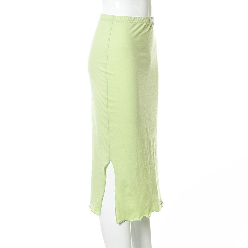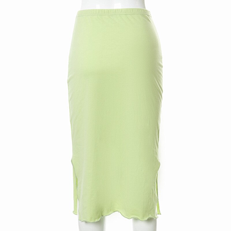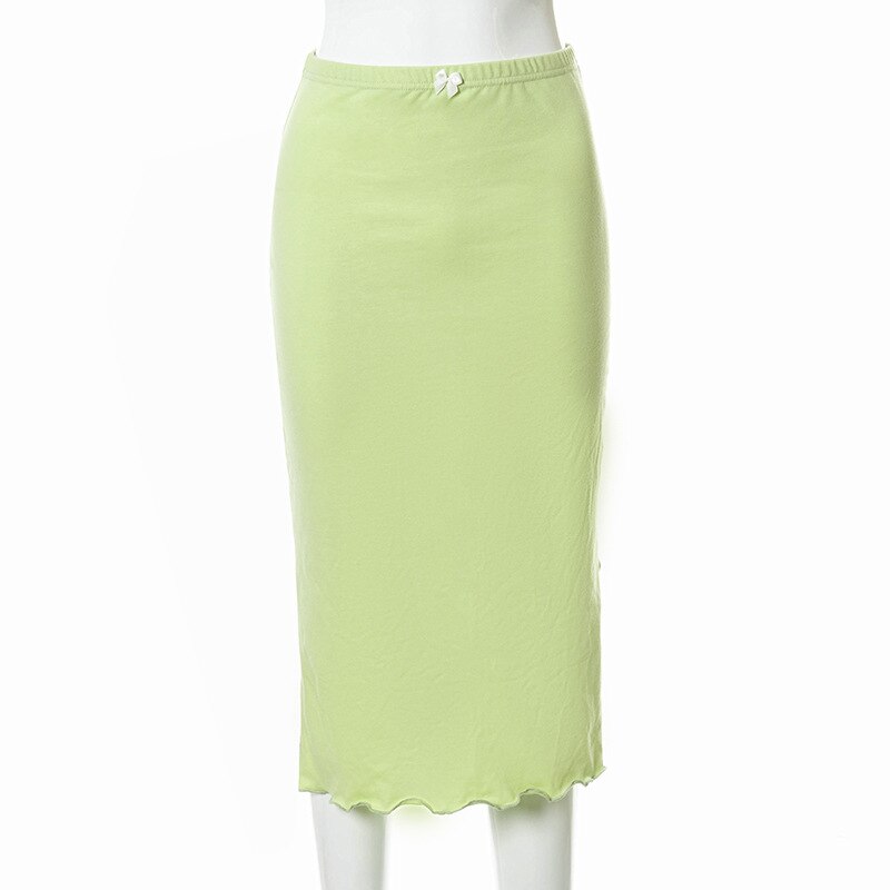 Bow High Waist Midi Skirts Y2K Outfits Streetwear Sexy Bodycon Slit Green Summer Skirts Women