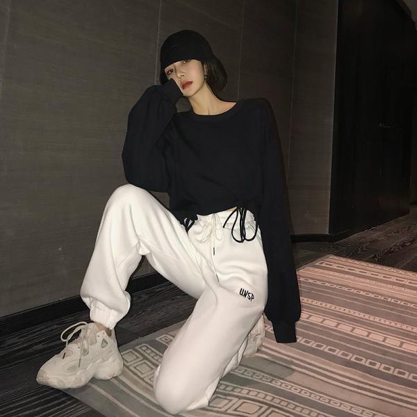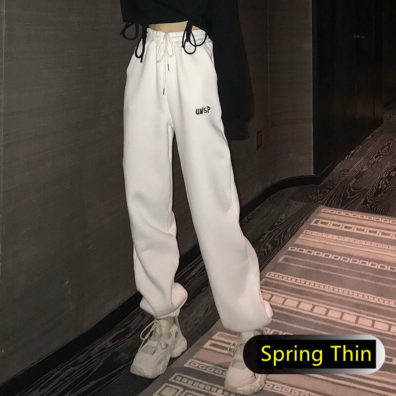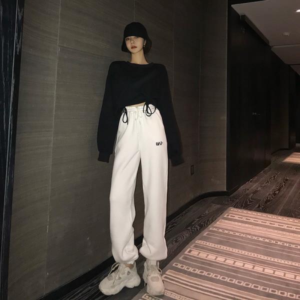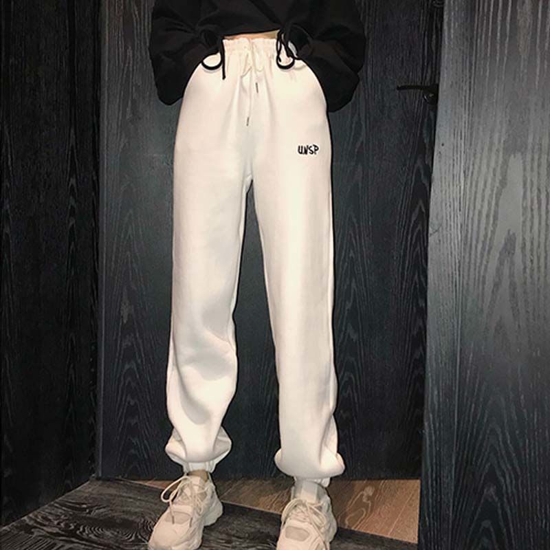 Spring Autumn Sweatpants New Fleece Warm Pants For Women Korean Fashion Casual Sports Pants Harem Oversize White Trouser